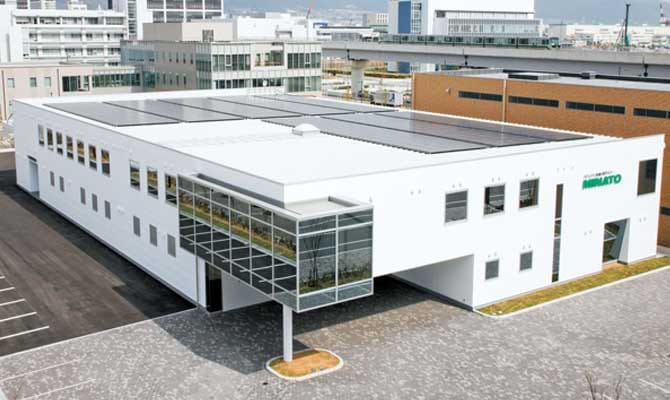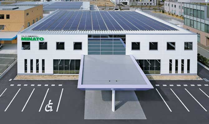 ミナト医科学神戸事業所は、敷地面積6,160㎡。203.4kwhの太陽光発電システムを備えた、環境にもやさしい事業所です。
