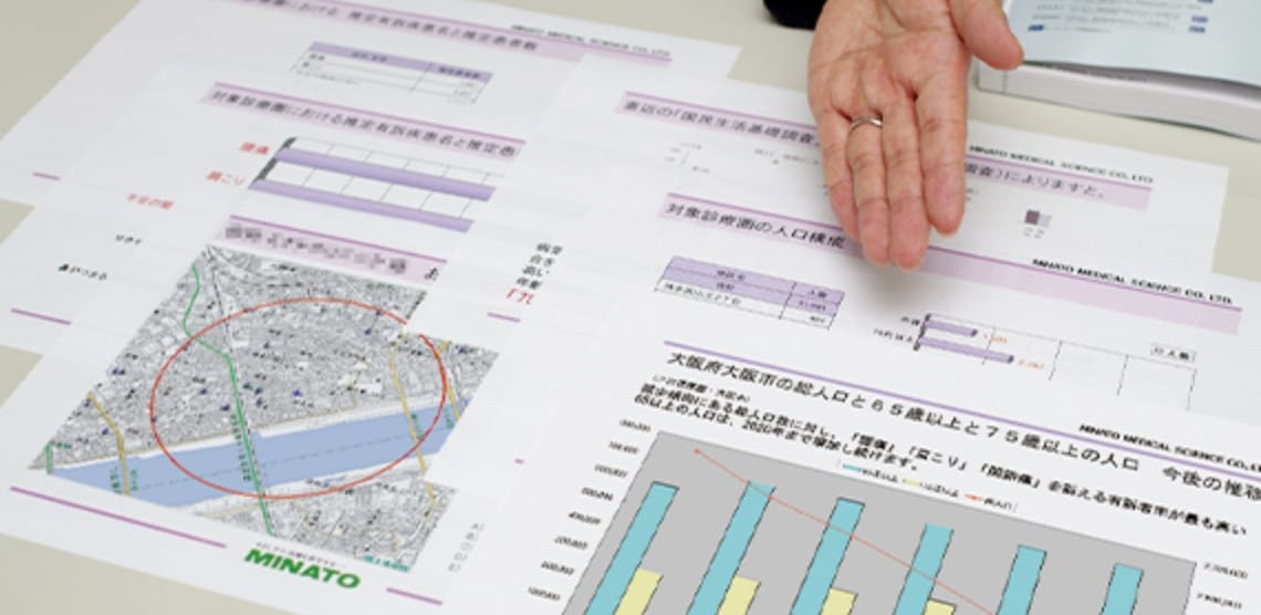 ご開業にあたりご開業場所の選定は非常に重要です。希望地域で条件の良い開業場所を探すにはどうすれば良いのか。ミナト医科学ではご開業予定地の情報提供を行っております。人口構成、今後の人口推移、対象診療圏における推定有訴疾患名や推定患者数などの事前調査をしっかりと行い地域医療に貢献するクリニックの実現を後押しします。