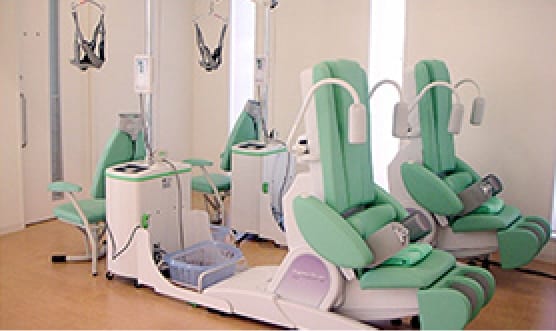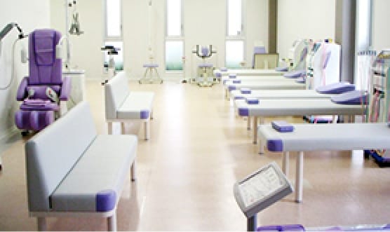 また、ミナト医科学では、患者様が治療時間を常に心地よく過ごせるように床や壁の色、空間にも配慮した機器のトータルカラーコーディネート「カラーオーダーシステム」をご用意しています。色彩心理学では、色が及ぼす人間の心の動きが研究されています。そうした色彩心理学の成果を活用することにより、患者様が落ち着いた気分で心地よく医療を受けられるよう工夫しております。また同時に医療施設の個性を表現できるようラベンダーカラーを基本色に、イメージに合わせたカラーバリエーションをオーダーいただけます。